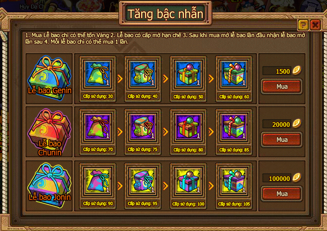 - Ninja nuôi cấp càng cao, Vàng trả lễ càng nhiều