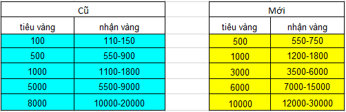 - 6. Vàng thưởng không được tính vào kinh nghiệm VIP và các hoạt động khác.