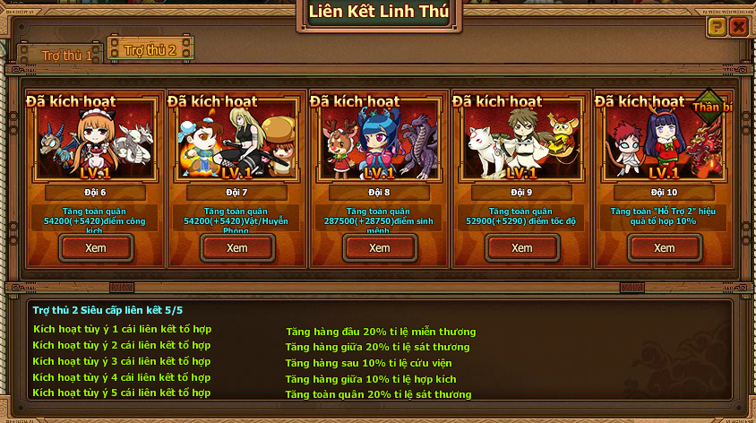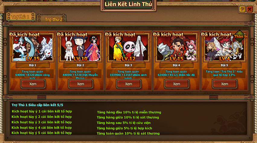 Chỉ số thuộc tính được cộng vào cho toàn đồng đội, khi kích hoạt các tổ hợp Thông Linh Thú có trong danh sách Linh Thú Liên Kết yêu cầu.