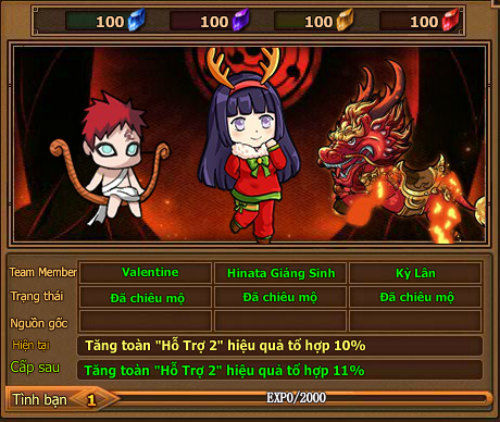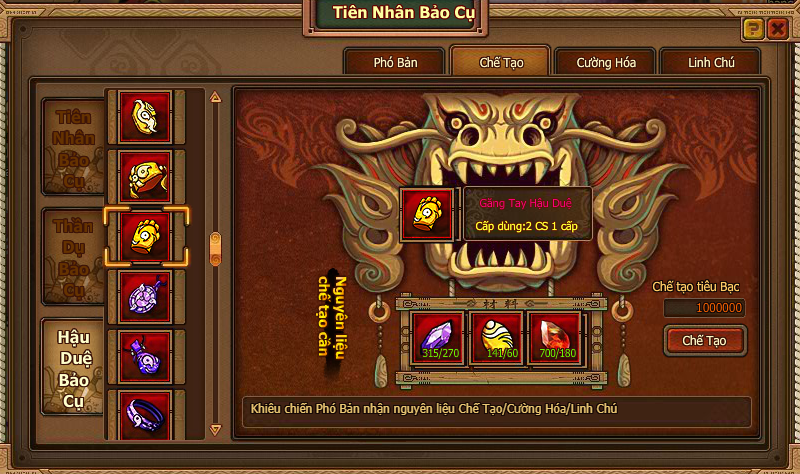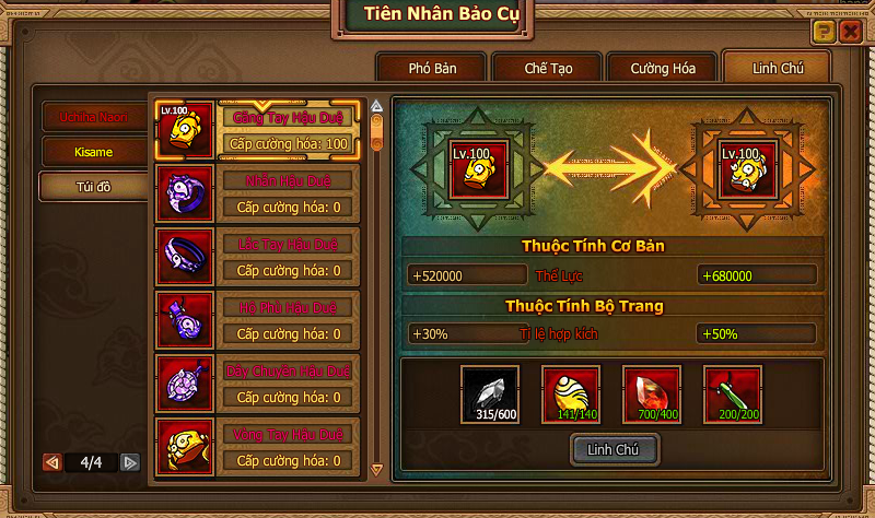 Khiêu chiến ải Đại Chiến Ninja - Tiên Nhân Bảo Cụ nhận nguyên liệu dùng chế tạo trang sức Hậu Duệ, nguyên liệu có thể có trong các hoạt động định kỳ. Dùng bạc và 3 loại nguyên liệu chỉ định để chế tạo trang sức Hậu Duệ.
