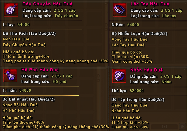 Nhân vật đạt 2CS 1 cấp mở ải này, khiêu chiến ải Đại Chiến Ninja nhận nguyên liệu chế tạo và mảnh trang sức chỉ định, chế tạo trang sức 2CS mới - trang sức Hậu Duệ!