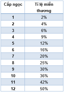 Thuộc tính ngọc ở từng cấp độ: