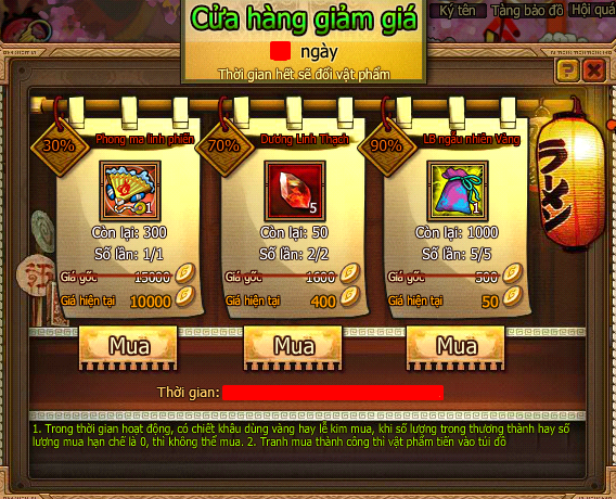 - Trong thời gian hoạt động, người chơi tiêu Vàng hoặc Lễ Kim mua theo giá hiện tại đã giảm.