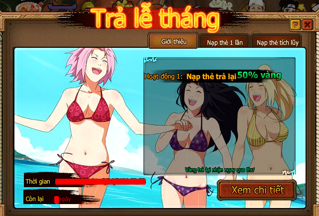 Nội dung hoạt động: nạp thẻ trong thời gian hoạt động diễn ra, có thể nhận được thêm 50% giá trị nạp.