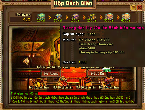 - Mở các loại hộp tổng tích lũy nhận hộp thưởng tích lũy Bách biến ma hộp.