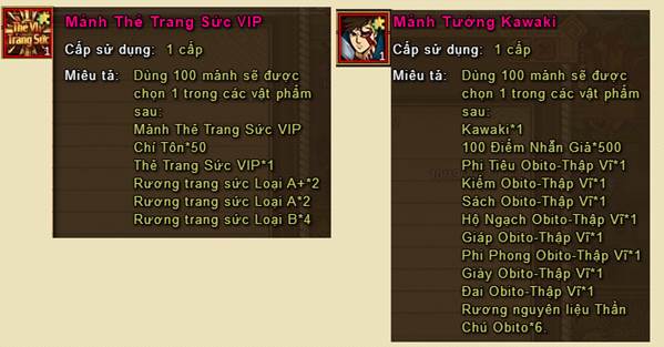 - Liên SV thu thập Huyết Kế đạt 20, và người chơi nạp và nhận tùy ý 1 mốc, sẽ nhận LB Tộc Otsutsuki.
