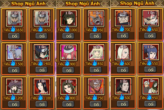 Tích lũy nạp mốc 2000 bán: Otsutsuki Urashiki (sau) (giá: 25.000 vàng), Utakata-Lục Vĩ (hàng sau) (giá: 25.000 vàng)