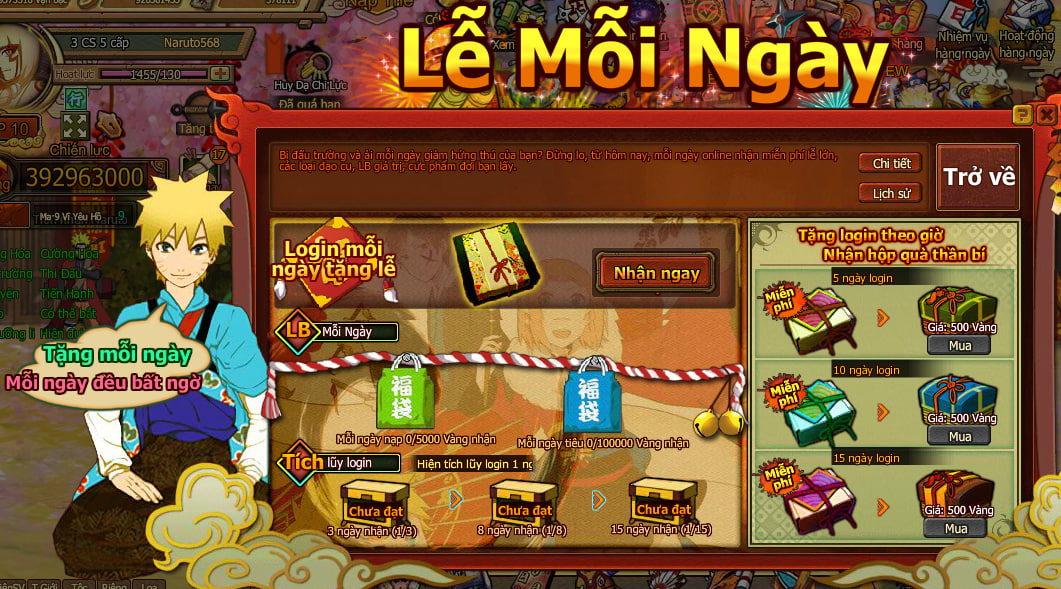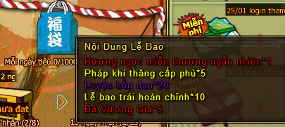 - Mỗi ngày đăng nhập có thể nhận thưởng đăng nhập.