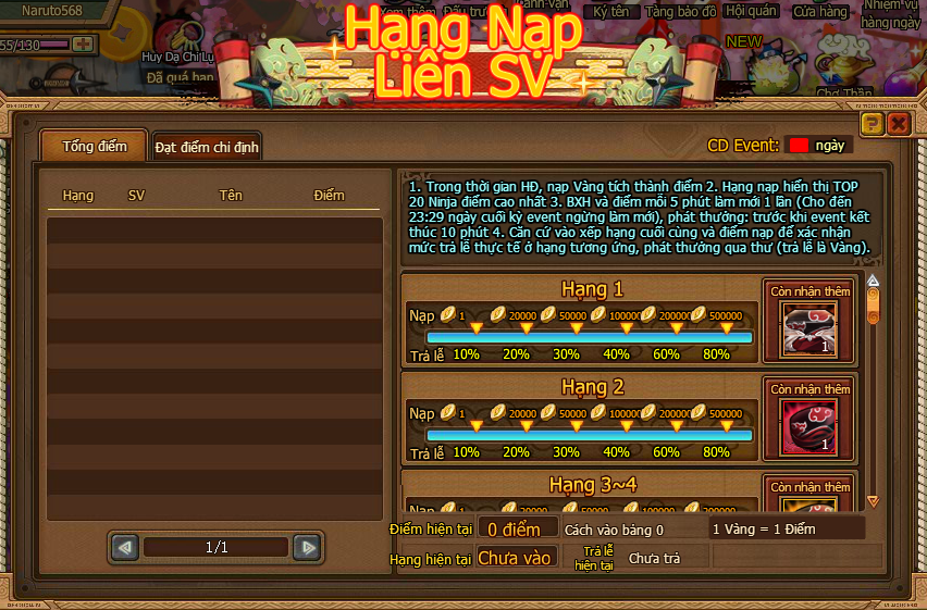 - Trong thời gian hoạt động, người chơi nạp Vàng sẽ chuyển thành điểm.