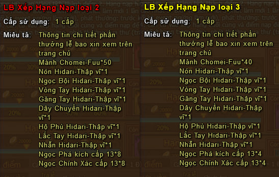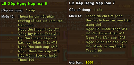 - Căn cứ vào xếp hạng cuối cùng và điểm nạp để xác nhận mức trả lễ thực tế ở hạng tương ứng, hệ thống phát thưởng trả lễ qua thư (trả lễ là Vàng).