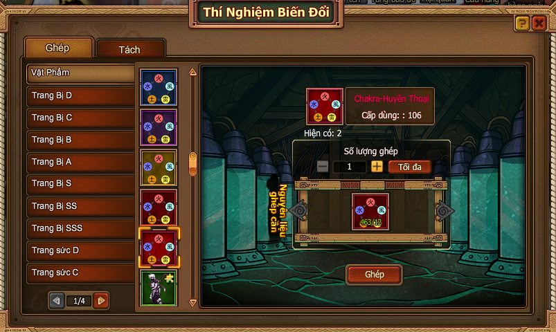 - Mì thường: Mảnh Trang Bị Bậc D,C,B,A,S,SS,SSS, Chakra-Sơ, Trung, Cao, Thượng, Kage, Huyền Thoại