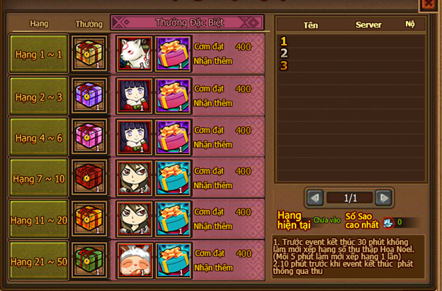 - Phần thưởng sẽ phát qua hình thức Hộp Thư, mong người chơi chú ý nhận thư.