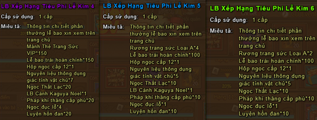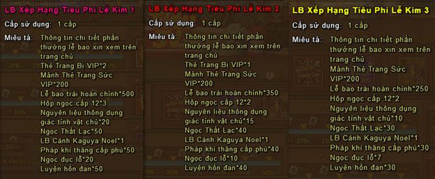 - Trong thời gian hoạt động, người chơi tiêu Vàng hoặc Lễ Kim đều chuyển thành điểm.