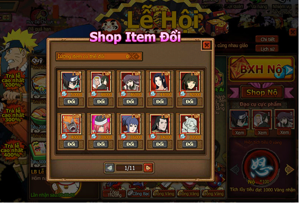 - Shop đổi: các vật phẩm hiếm như Ryo, Trang sức trống, Trang bị trống,…