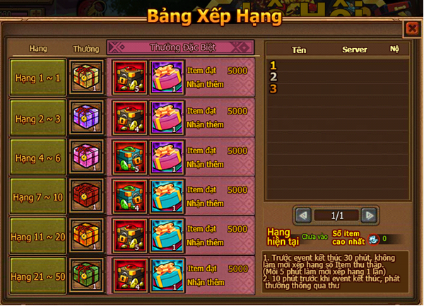 - Phần thưởng sẽ phát qua hình thức Hộp Thư, mong người chơi chú ý nhận thư.